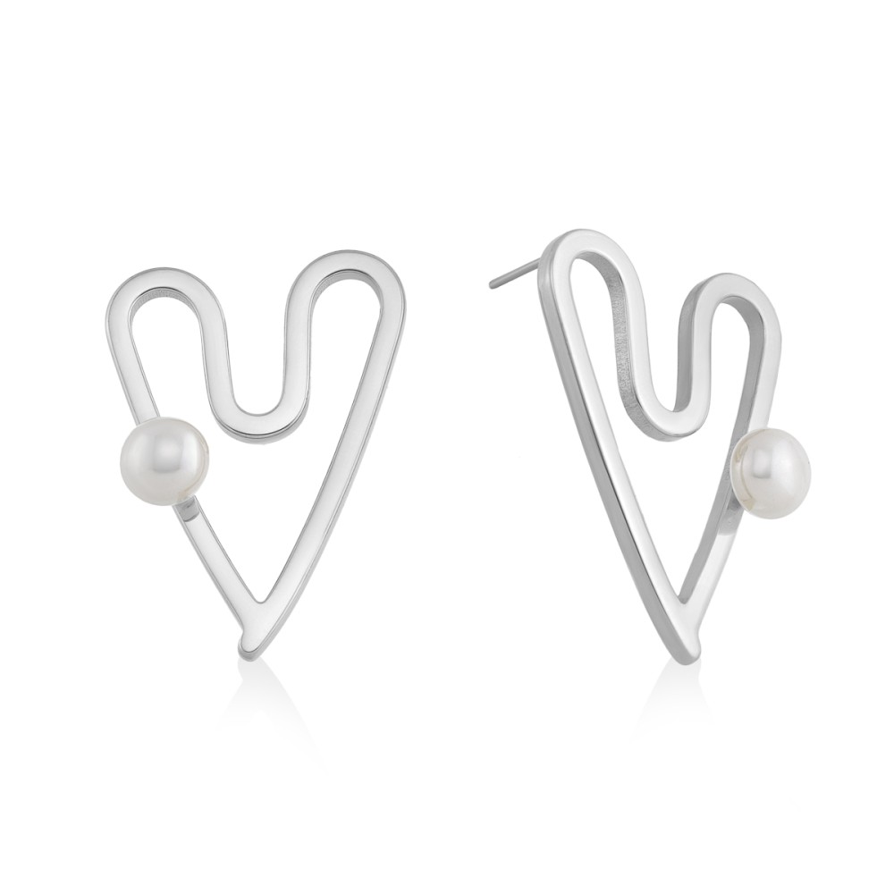 Το trend της χρονιάς ένα ζευγάρι σκουλαρίκια σχέδιο καρδιά με μαργαριτάρι από ανοξείδωτο ατσάλι (stainless steel) της συλλογής Simplicity.