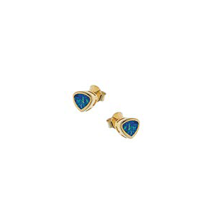 Ένα υπέροχο ζευγάρι σκουλαρίκια, σε τρίγωνο σχήμα, με διακοσμητικά ζιργκόν σε μπλε χρώμα, από επιχρυσωμένοασήμι 925°. Ένα πανέμορφο δώρο για το καλοκαίρι.