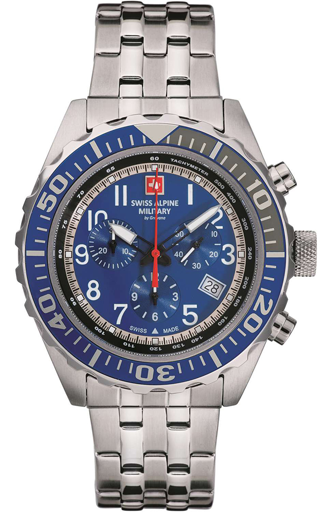 SWISS ALPINE MILITARY Navy Stainless Steel Chronograph