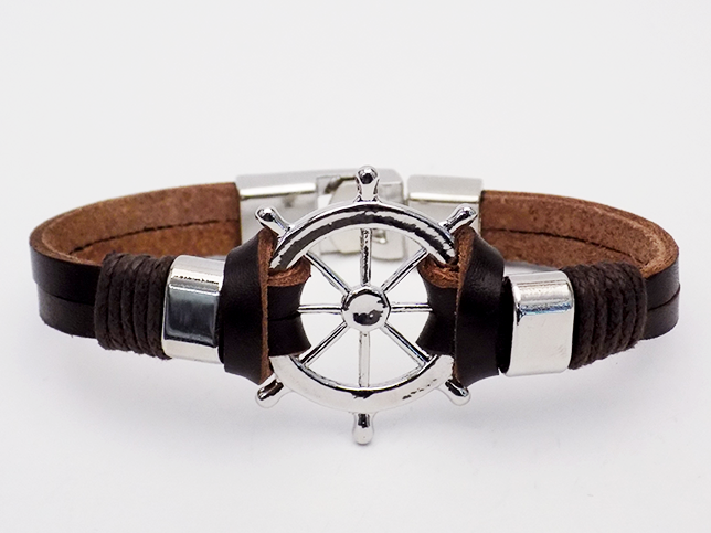 Βραχιόλι Δερμάτινο Καφέ Με Τιμόνι