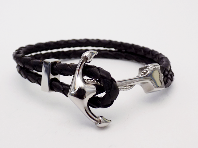 Βραχιόλι Δερμάτινο Μαύρο Με Ατσάλινη Άγκυρα