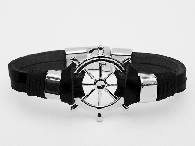 Βραχιόλι Δερμάτινο Μαύρο Με Τιμόνι