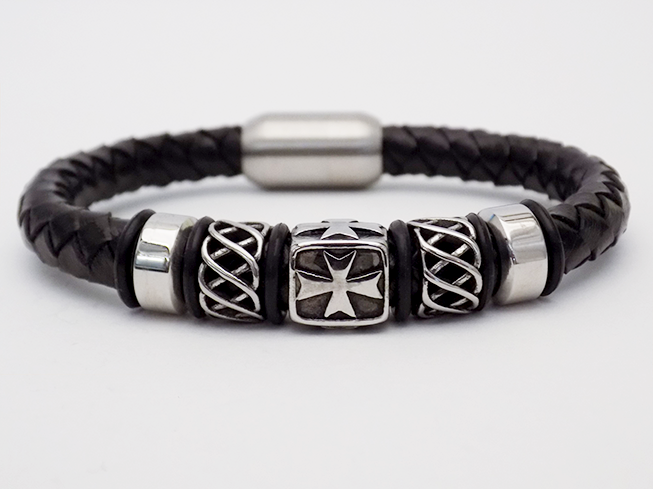 Βραχιόλι Δερμάτινο Με Ατσάλινο Σταυρό