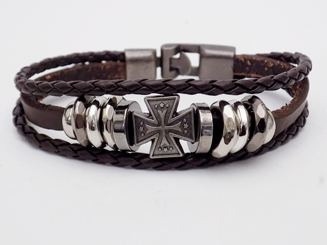 Βραχιόλι Δερμάτινο Με Μοτίφ Σταυρό