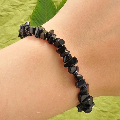 Ένα ευκολοφόρετο ελαστικό βραχιόλι με ημιπολύτιμη πέτρα blue black goldstone. Οι πέτρες είναι ασύμμετρες και γιαυτό μπορεί να διαφέρουν ελαφρώς απο τις εικονιζόμενες.