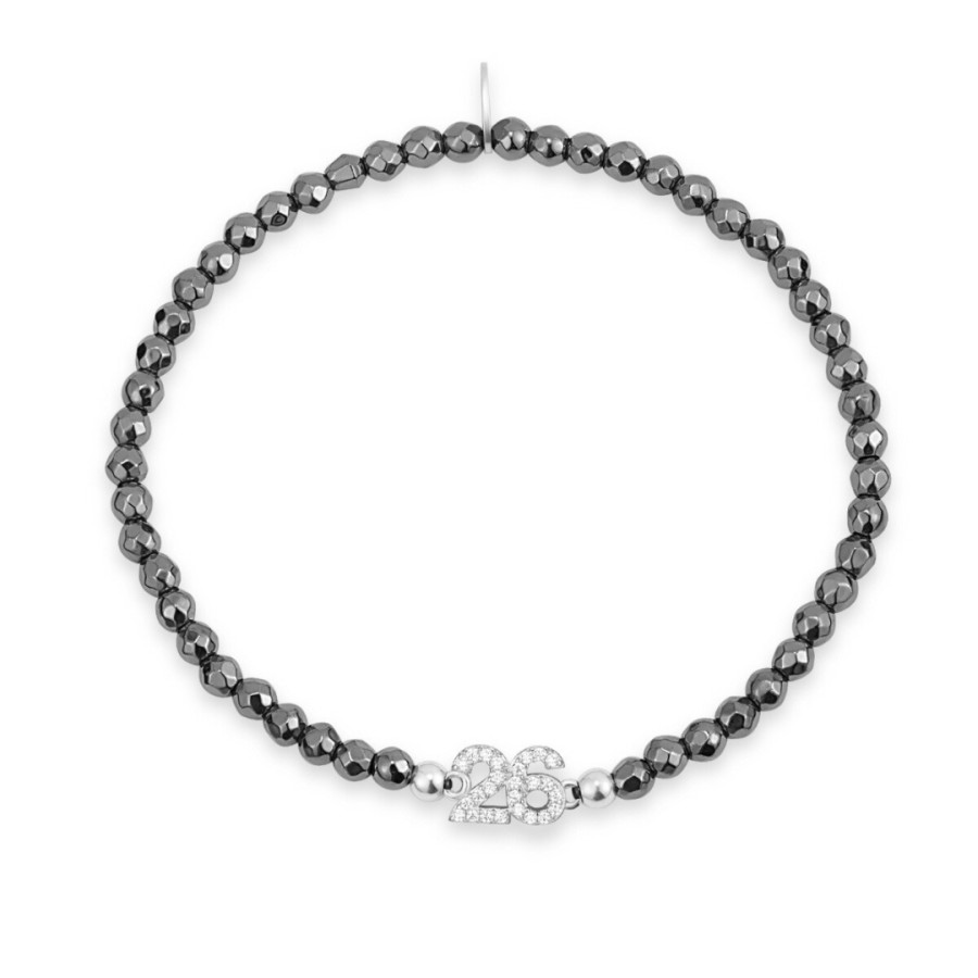 Βραχιόλι Jewelies, γούρι 2026 σε σχέδιο 26 με αιματίτη από επιπλατινωμένο ασήμι 925°.