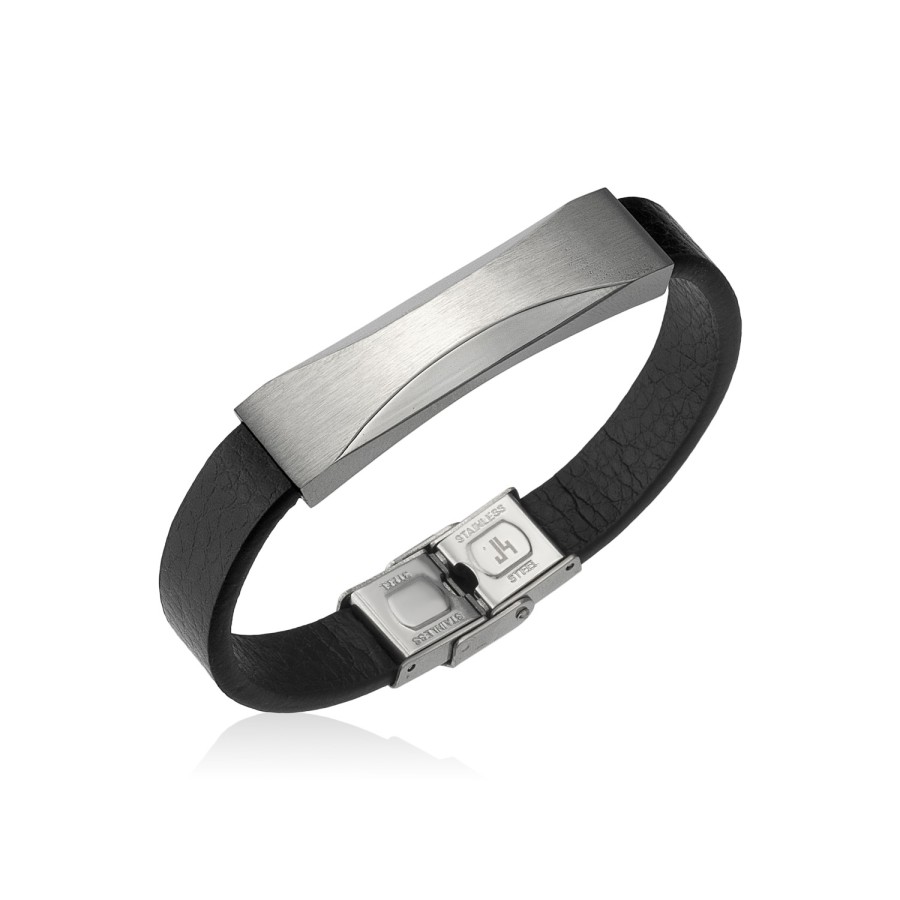 Ένα κομψό βραχιόλι με δέρμα και ταυτότητα της Συλλογής J4 από ανοξείδωτο ατσάλι .