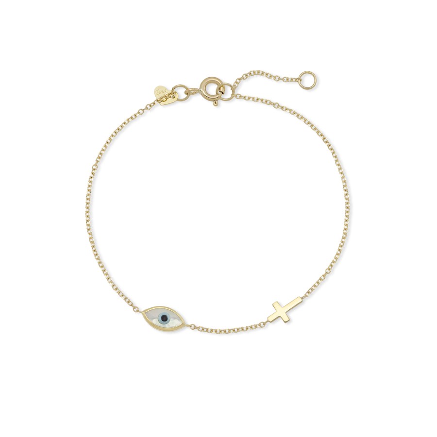 Ένα κομψό βραχιόλι με αλυσίδα σχέδιο σχήμα ματιού και σταυρό από χρυσό 9 καρατιών.