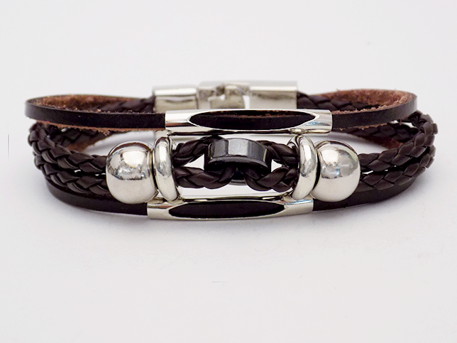 Βραχιόλι Καφέ Δερμάτινο με Κρίκους