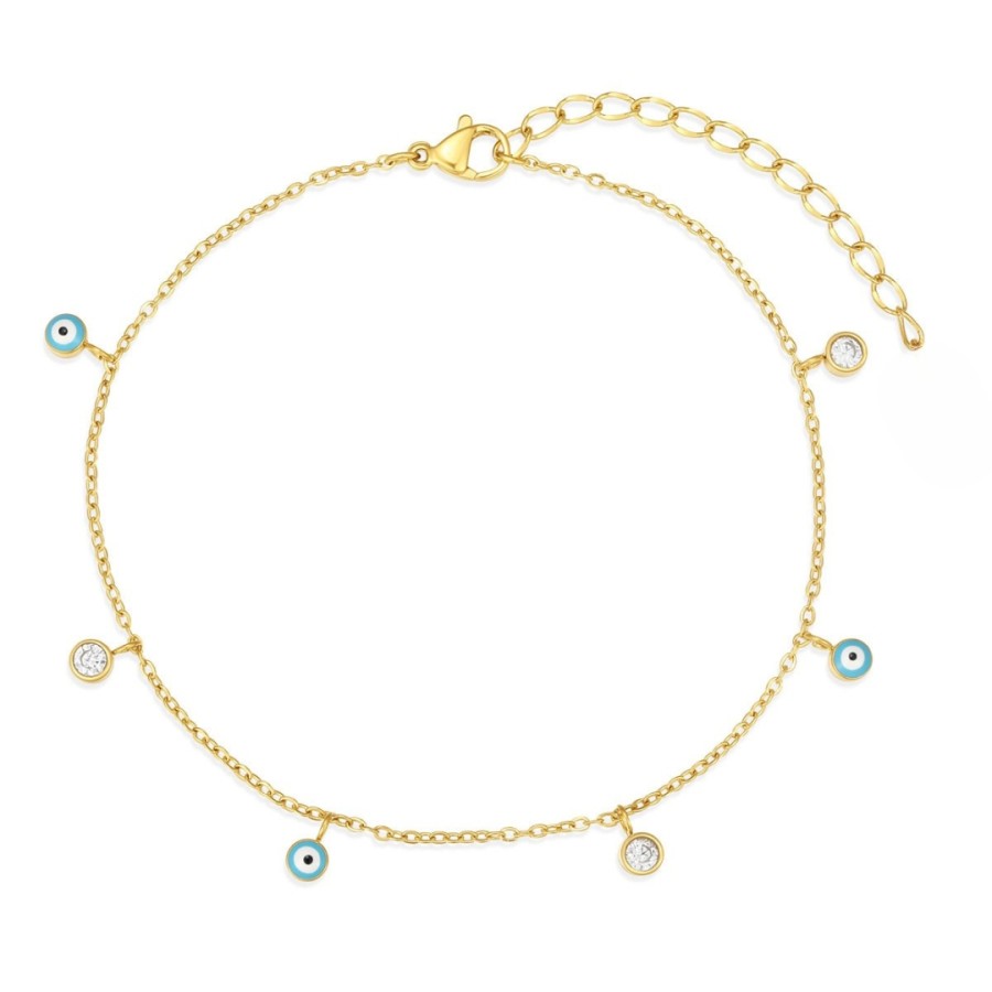 Βραχιόλι ποδιού Jewelies(jewls and jems), σχέδιο με μονόπετρα και ματάκια από επιχρυσωμένο ανοξείδωτο ατσάλι.